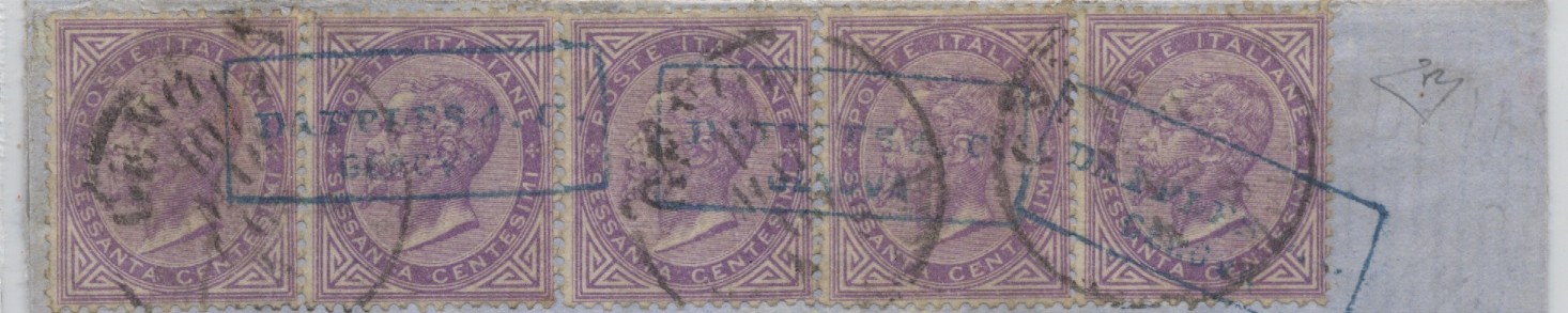La convenzione postale tra il Regno di Sardegna e il Regno Unito, successivamente estesa al Regno d’Italia, prevedeva per le lettere in partenza dall’Italia un’affrancatura di 60 centesimi pe