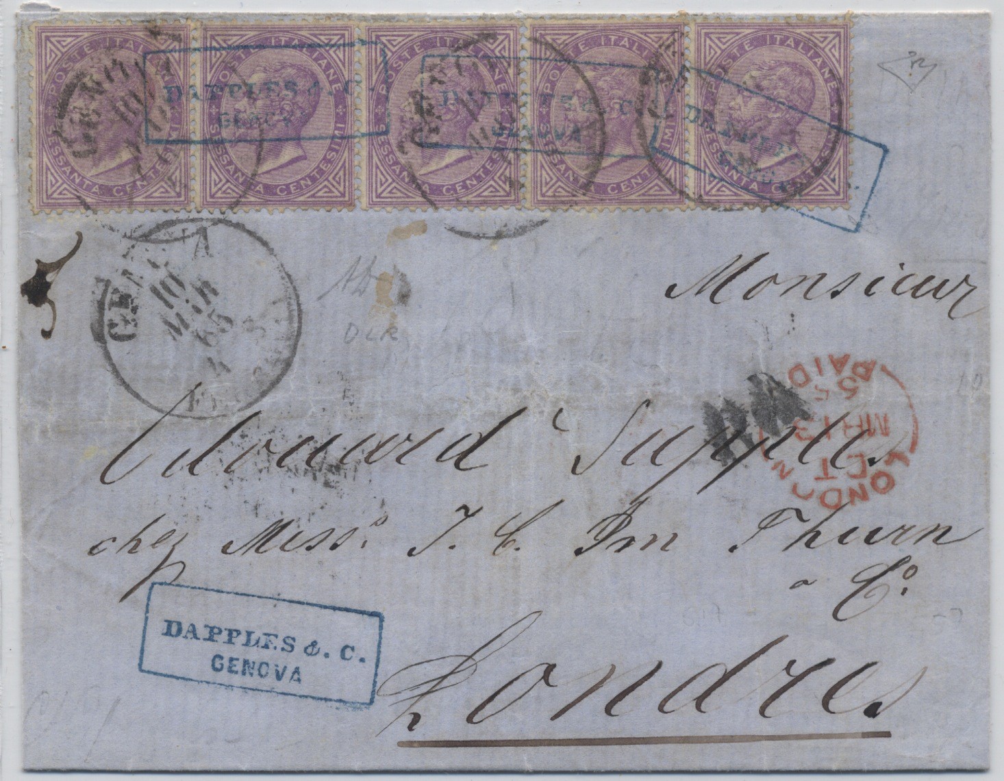 10 marzo 1865 – Lettera spedita da Genova a Londra dalla ditta Dapples & C. - Andrea Mori